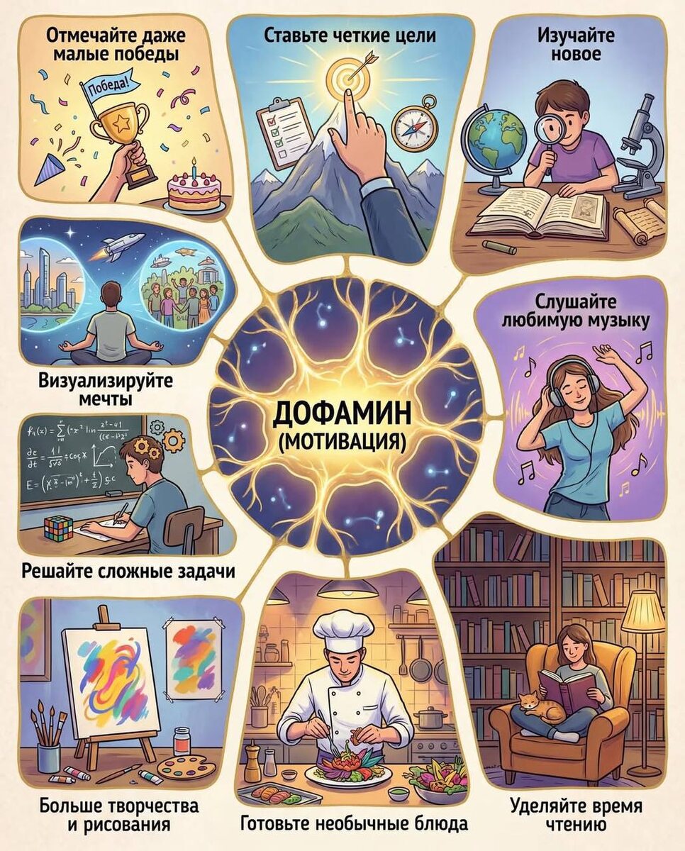 Я все чаще вижу, что дело не в количестве работы. Дело в том, что мы разучились отдыхать. Мы теряем контакт с телом, путаем восстановление с развлечением - и в итоге остаемся уставшими даже после “отдыха”. И часто за этим стоит не просто усталость, а нехватка нужных состояний внутри: • Если нет мотивции - это нехватка дофамина • Если нет легкости - это нехватка эндорфинов • Если нет энергии - это нехватка адреналина • Если нет баланса - это нехватка серотонина • Если недостаточно восстановления - это нехватка мелатонина Наше состояние - это не только мысли, это еще и химия тела. И хорошая новость в том, что на нее можно влиять.. Прочекиньте , какой из способов, описанных в карусели, вы возьмете на регулярную основу прямо сейчас? Пишите что нового для себя не пробовали 👇