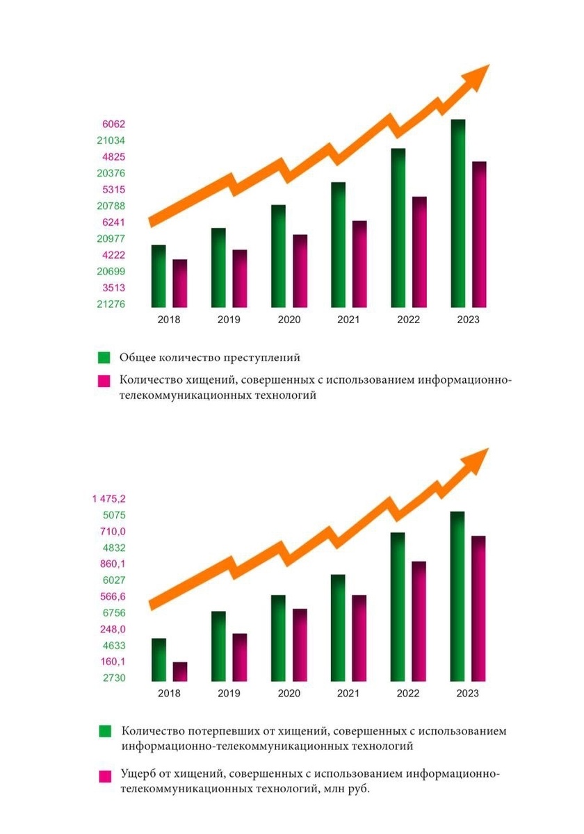 Графики наглядно показывают: количество IT-преступлений и ущерб от них растут год от года.
