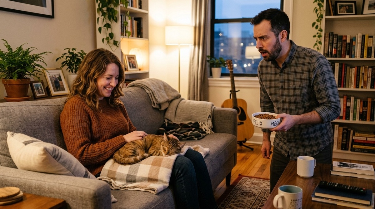 Иногда кошке гораздо важнее не «кто красивее улыбается», а «кто каждый вечер в одно и то же время приносит еду и не устраивает эмоциональный цирк».