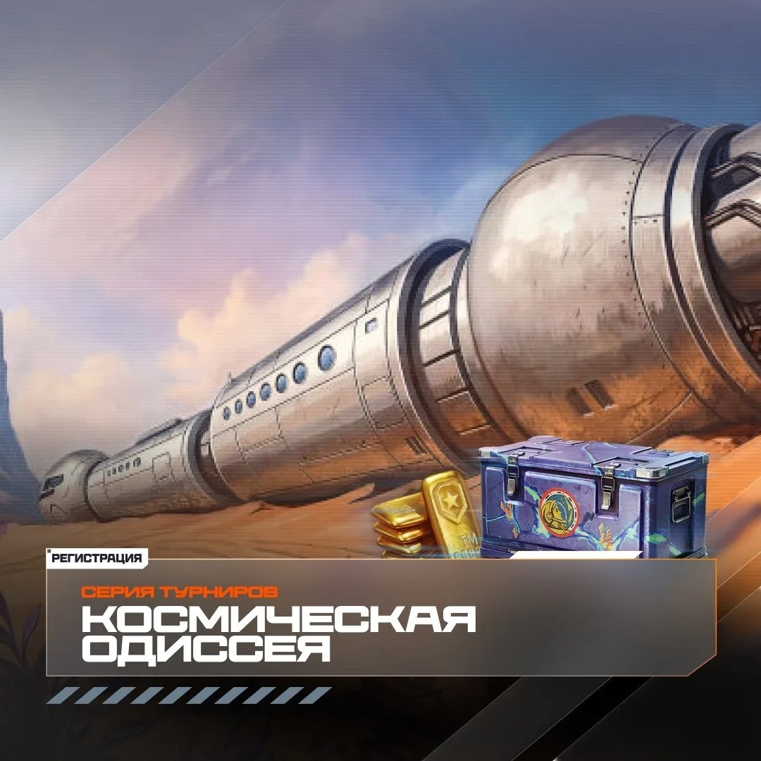 🏆 «Космическая Одиссея» уже в разгаре! Сражайся, занимай призовые места и забирай награды — серия проходит до 19 апреля! 🎁 Награды: 💰 Встречный бой 1 х 1 — до 2 200 золота, 💰 Встречный бой 2 х 2 — до 4 400 золота на команду, 💰 Встречный бой 3 х 3 — до 6 600 золота на команду. 🌠 Контейнеры «Дар Востока», 💟 2D-стиль «В космос!» Подробнее о серии и регистрация: 👉 tanki.su/ru/news/tournaments/cosmic-2026-tournaments/