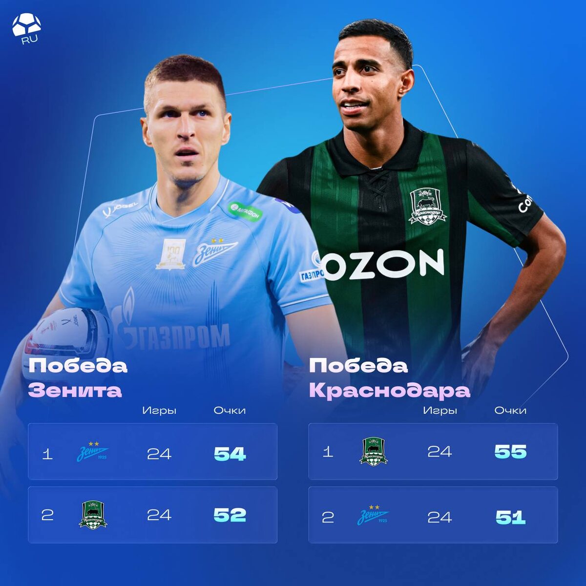 В прошлом сезоне СБГ разгромили быков со счетом 4:1, но всё равно стали вторыми. Матч тогда также состоялся в 24 туре, но даже это поражение не помешало «Краснодару». В этом сезоне впереди у обеих команд 100% возможны осечки. Семаку предстоят выезды к «Локомотиву» и ЦСКА, а Мусаеву – к «Спартаку» и «Динамо» + минимум 1 матч в Кубке. Но если смотреть календарь, сложнее всё же «Краснодару»: кроме относительно проходных соперников, быков ждет почти непобедимая «Балтика». Отрыв в любом случае не станет критичным: либо у южан будет +4, что вполне отыгрывается, либо «Зенит» получит преимущество в два очка – разница в одну победу. Если резюмировать, то у матча больше значения с психологической точки зрения, нежели с турнирной. Максимум результат еще может повлиять на таблицу при равенстве очков, тут пока преимущество у «Зенита». @myach