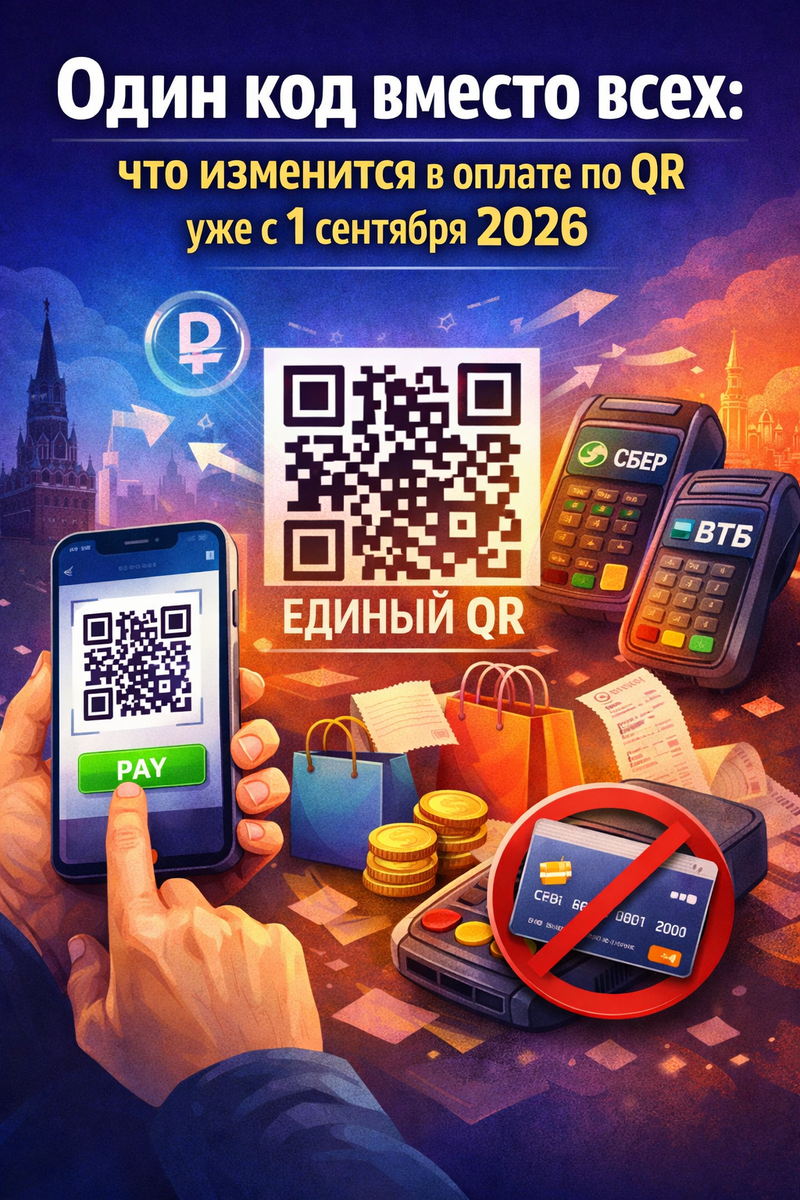 Главная новость — с 1 сентября 2026 года банки будут обязаны использовать единый универсальный QR-код от НСПК. Это решение должно убрать путаницу, когда на кассе висит несколько разных QR-кодов от разных банков и платёжных сервисов.