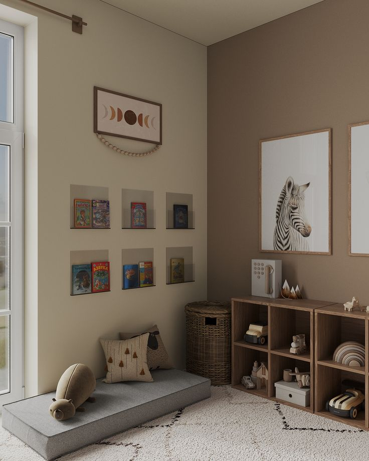 Когда база нейтральная — детские вещи (яркие игрушки, цветные книги, рисунки на холодильнике) смотрятся как контролируемые акценты, а не как хаос.