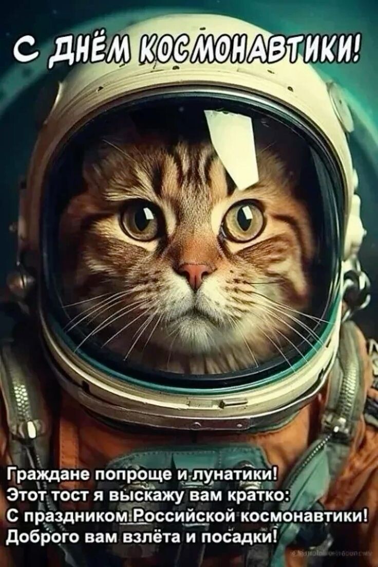 Смотрим мемы с котиками в честь праздника космоса.