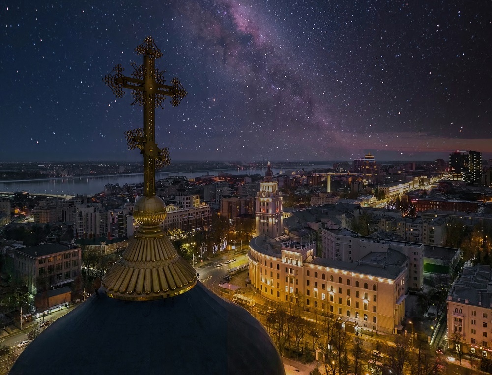 В ночь с 11 на 12 апреля 2026 года православные воронежцы встретили Светлое Христово Воскресение. Главное праздничное богослужение в честь Пасхи по традиции прошло в Благовещенском кафедральном соборе - самом большом храме города, который является третьим по величине в России. Службу в главной православной святыне региона возглавил митрополит Воронежский и Лискинский Леонтий. Праздничное богослужение началось в полночь с чтения канона о погребении Спасителя. Кульминацией приготовлений к встрече Пасхи стал момент, когда святыню - Плащаницу - перенесли в алтарь. Торжественное богослужение транслировалось в прямом эфире телеканала «ТВ Губерния». Фоторепортаж, опубликованный в группе «Воронежская область», запечатлел ключевые моменты этой торжественной ночи. Авторы снимков поднялись на колокольню собора, чтобы показать ночной Воронеж с высоты птичьего полета. С купола храма открывается величественная панорама города, преображенного звездным небом. На других кадрах - торжественная служба, г