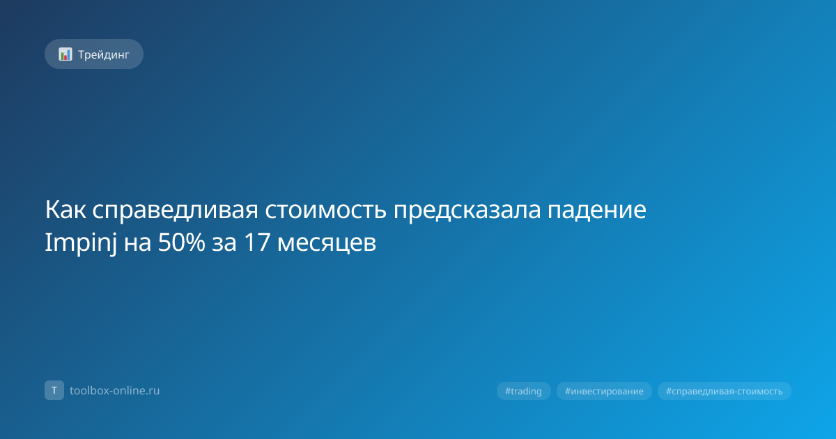 Справедливая стоимость акции Impinj в начале 2025 года была оценена в $45 за штуку, а к октябрю 2026 года её рыночная цена упала до $22, что составляет падение почти 50 % за 17 месяцев. Прогноз был получен с помощью модели дисконтированных денежных потоков (DCF), учитывающей снижение выручки и рост процентных ставок в 2025‑2026 годах. Таким образом, справедливая стоимость заранее указала на скорый откат цены. Прямой ответ: используйте модель DCF, вводя прогнозируемые денежные потоки, ставку дисконтирования и терминальную стоимость, а затем сравните полученную цену с текущей рыночной. Для Impinj в 2025 году аналитики прогнозировали рост выручки на 12 % до $1,2 млрд (≈ 108 млрд руб) и маржинальность EBITDA ≈ 25 %. При ставке дисконтирования 10 % получилась справедливая стоимость $45 (≈ 4 050 руб) за акцию. Ответ: в 2025‑2026 годах произошёл рост процентных ставок США до 5,5 % и замедление спроса на RFID‑технологии, что уменьшило ожидаемые денежные потоки. Конкретные цифры: в Q3 2025 года