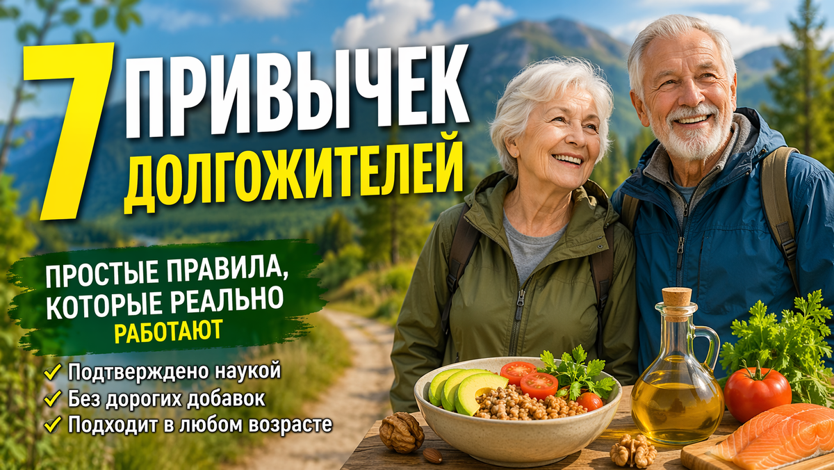 Если посмотреть на регионы, где люди живут дольше всего - Япония (Окинава), Италия (Сардиния), Греция (Икария), Коста-Рика (Никоя) - можно заметить одну важную вещь. У них нет “секретной таблетки”. Но есть повторяющиеся привычки, которые подтверждаются исследованиями. И самое важное - они простые, но системные. Разберём 7 привычек, которые реально связаны с долгой жизнью. Одна из самых изученных привычек - не переедать. Например, в Японии есть принцип "хара хачи бу" - есть до 80% насыщения. Исследования показывают, что умеренное ограничение калорий связано с меньшим риском диабета, сердечно-сосудистых заболеваний и даже замедлением старения на клеточном уровне. Важно не голодать, а просто не доедать “на автомате”. Долгожители редко ходят в зал. Но они постоянно двигаются. Это называется низкоинтенсивная активность в течение дня. Она снижает риск смертности сильнее, чем редкие интенсивные тренировки. Главное - не сидеть по 8-10 часов подряд. Рацион долгожителей почти всегда выглядит оди