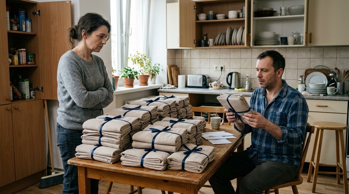 – Мам, привет. Да, всё нормально. Слушай, мы тут с Риной разбираем шкафы... Да, ремонт планируем. Мам, я вот что хотел спросить. Ты Рине на день рождения каждый год полотенца даришь, да? Нет, она не жаловалась. Я сам увидел. Тут двадцать наборов, мам. Одинаковых. Почему именно полотенца-то?