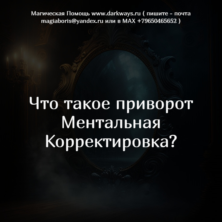 Ментальная корректировка — это магическое воздействие на мысли и убеждения человека. Она убирает то, что мешает ему нормально воспринимать любовь: страхи, сомнения, обиды, ложные установки. Человек перестаёт сопротивляться, открывается чувству, начинает видеть вас по-новому. Но если любви как таковой ещё нет, или она слишком слаба, одной корректировки недостаточно. В таких случаях применяют приворот с ментальной корректировкой. Это комбинированный метод: сначала создаётся и укрепляется любовное чувство (сам приворот), а потом сознание подстраивается под него — убираются блоки, которые мешают это чувство принять. По силе такой подход уступает жёсткому зомбированию. Но это и не нужно в большинстве ситуаций. Часто достаточно мягко подтолкнуть человека, убрать его внутренние препятствия — и дальше чувства развиваются сами, естественно и без насилия над личностью. Именно для таких случаев и существует ментальная корректировка. Она не ломает, а помогает. ❗Веду также канал в Макс - ссылка ✔️