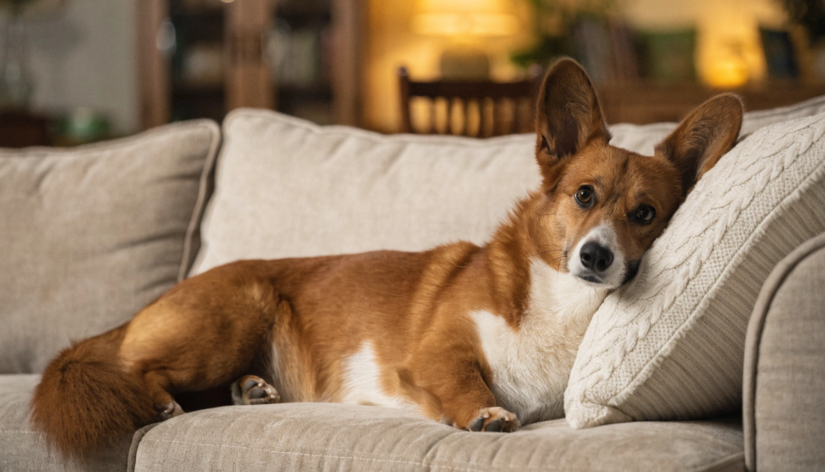 Корги Маша решила, что диван — её. И, кажется, она права