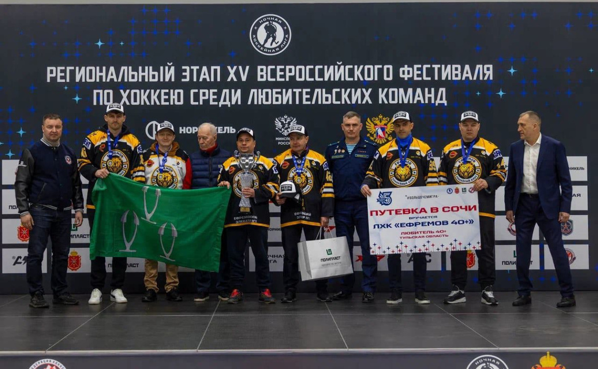 11 апреля в Туле прошла торжественная церемония закрытия регионального этапа XV Всероссийского фестиваля «Ночная хоккейная лига» среди любительских команд. Сезон 2025/26 выдался поистине массовым: на лед вышли 50 коллективов — около 1200 хоккеистов-любителей из разных уголков Тульской области. Соревнования проходили в четырех дивизионах: «Лига Надежды», «Любитель 40+», «Лига Мечты» и «Любитель 50+». Турнир объединил спортсменов из Тулы, Новомосковска, Щёкино, Суворова, Киреевска, Ефремова, Алексина, Узловой, Донского, поселка Куркино и деревни Карамышево. Каждый матч был настоящим проявлением характера, воли к победе и искренней любви к хоккею. Главный итог сезона — определены коллективы, которым предстоит защищать честь Тульской области на всероссийском финале Ночной хоккейной лиги в Сочи с 4 по 16 мая. Награды победителям и призерам вручали министр спорта региона Михаил Трунов, член Совета Легенд НХЛ, трехкратный чемпион мира Вячеслав Анисин, исполнительный директор Федерации хоккея