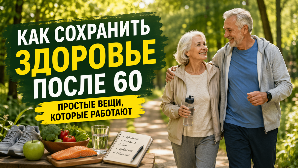 После 60 организм не «ломается» резко. Он меняется постепенно. И главная ошибка большинства - пытаться жить так же, как в 30, игнорируя эти изменения. Но есть хорошая новость. Именно в этом возрасте здоровье сильнее всего зависит от образа жизни. Не от генетики, не от «судьбы», а от ежедневных привычек. Разберем без воды, что реально влияет на самочувствие и продолжительность жизни. После 60 мышечная масса уменьшается на 1-2% в год. Это называется саркопения. Вместе с мышцами уходит сила, выносливость и даже скорость обмена веществ. Но это обратимый процесс. Что показывают исследования: Важно не «спорт ради спорта», а регулярность: После 60 снижается чувствительность к инсулину и замедляется метаболизм. Поэтому питание становится ключевым фактором. Основные принципы: Что реально работает: Важно - не переедать. С возрастом потребность в калориях снижается. С возрастом сон становится более поверхностным. Но его качество напрямую влияет на: Проблема в том, что многие списывают плохой сон