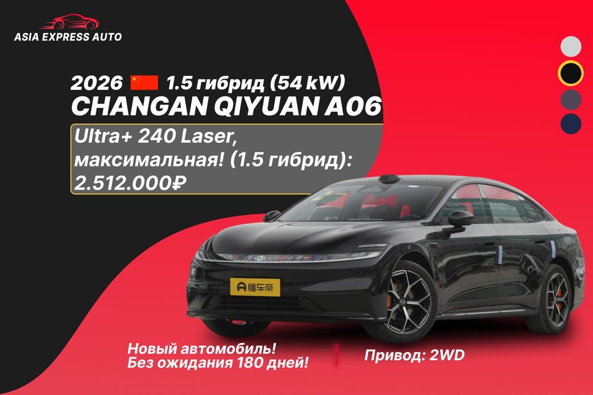 !🆕 🚀Быстрая доставка в РФ без ожидания!🚀 🔖Стоимость автомобиля рассчитана по курсу на сегодняшнее число до нашей стоянки в г. Благовещенск или Владивосток, с полным пакетом документов для постановки на учет! 🔖 Отправка в любой город! CHANGAN QIYUAN A06 новый! ▫️Год: 2026 ▫️Двигатель: 1.5 гибрид ▫️Привод: 2WD ▫️Новый автомобиль!💎 💰Стоимость под ключ в РФ: 🔹Ultra+ 240 Laser, максимальная! (Нажмите на ссылку, чтобы увидеть комплектацию полностью): 2.512.000₽ 💸По курсу юаня 11.66 (с учетом комиссии 2% банка ВТБ) Стоимость может измениться из-за цвета! Если вас интересуют другие автомобили, напишите в комментариях — наши менеджеры с удовольствием рассчитают цену под ключ в РФ. ✍️ 🔴Смотреть адреса офисов 🔴Владимир Благовещенск #Китай #Новый