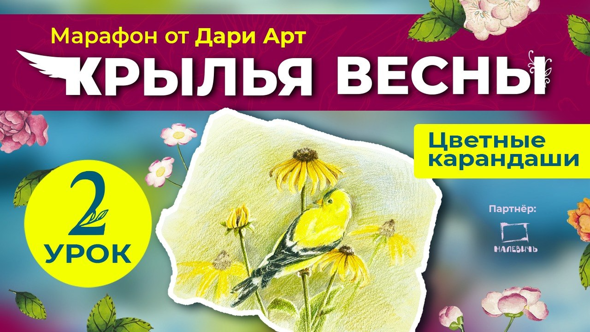 В марафоне "Крылья весны" рисуем цветными карандашами, а поддерживает нас компания Малевичъ