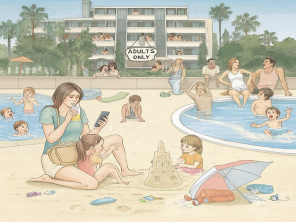Лично я обожаю отдыхать с дочкой. Но многие мои знакомые ненавидят соседство с детьми. Их можно понять. Отдых с малышами в реальности редко похож на рекламные буклеты. Это визг у бассейна, крики на пляже, плач из-за песка в сандалиях и бесконечные просьбы — «хочу пить», «мне жарко», «давай домой», «а почему нельзя».