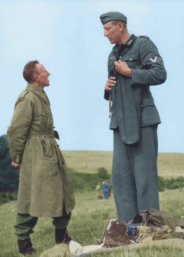 Представьте себе: Якоб Накен, самый высокий немецкий солдат времен Второй мировой войны, с ростом 221 см, и канадский капрал Боб Робертс