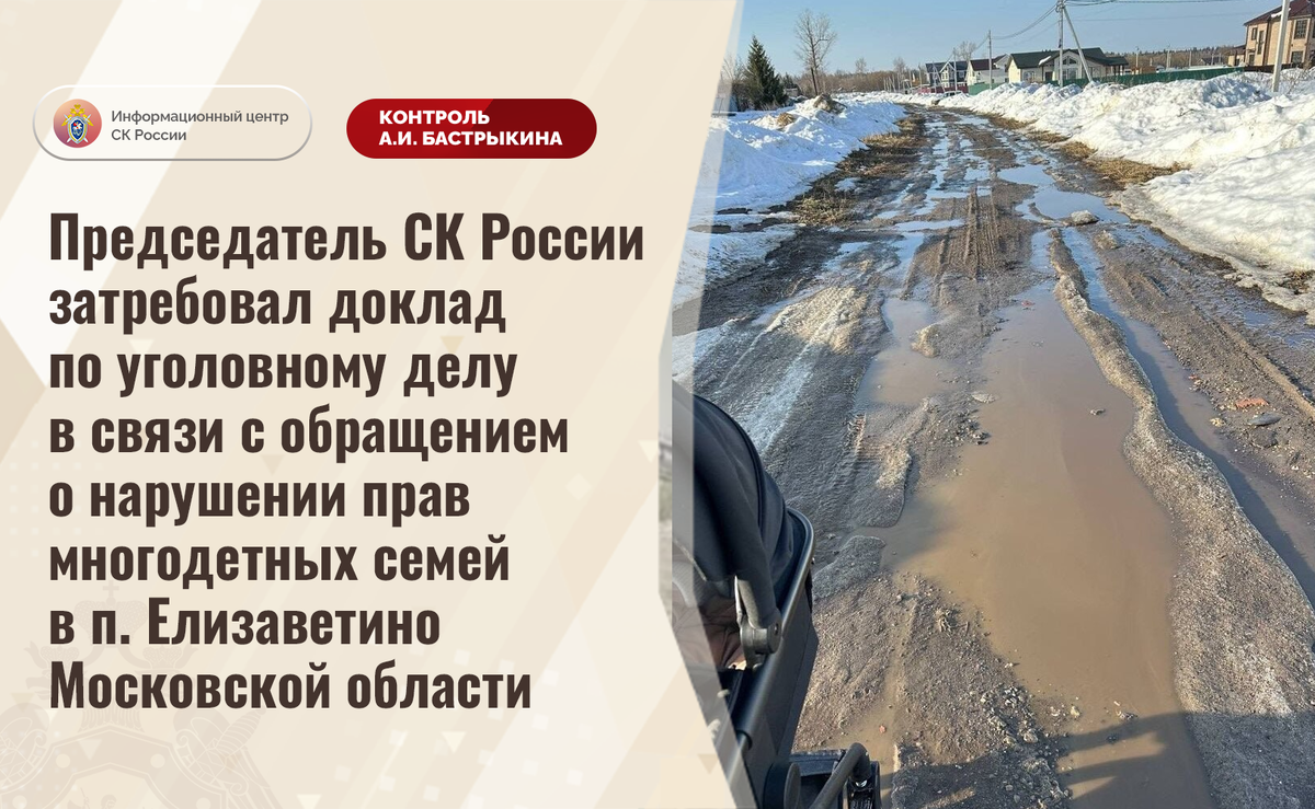 Председатель СК России затребовал доклад по уголовному делу в связи с обращением о нарушении прав многодетных семей в п. Елизаветино Московской области