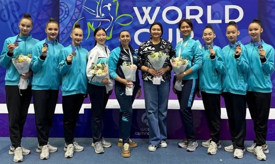 Команда Казахстана по художественной гимнастике поднялась на пьедестал этапа Кубка мира в Ташкенте (Узбекистан), передает «24KZ» со ссылкой на Olympic.kz. Наши спортсменки завоевали серебряную медаль в групповых упражнениях. В многоборье Казахстан набрал в сумме 51,25 балла. Страну представили Айзере Нурмагамбетова, Айзере Кенес, Кристина Чепульская, Аида Хакимжанова, Жасмин Джунусбаева, Мадина Мырзабай. Первой стала сборная Китая – 55,90. Гимнастки из Беларуси финишировали третьими – 51,10. Сегодня, 12 апреля, состоятся финалы в отдельных упражнениях.