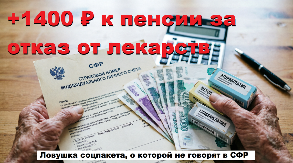 Закон даёт вам право заменить эти услуги живыми деньгами. Вы можете отказаться от всего пакета сразу или от какой-то одной его части. Если вы откажетесь только от лекарственного обеспечения, в 2026 году доплата составит 1405 рублей 85 копеек. Полный отказ от всего набора даст прибавку в 1825 рублей 25 копеек. Цифры небольшие, но для многих они кажутся спасением в конце месяца. Именно здесь кроется главный подвох, который редко афишируют в официальных брошюрах.