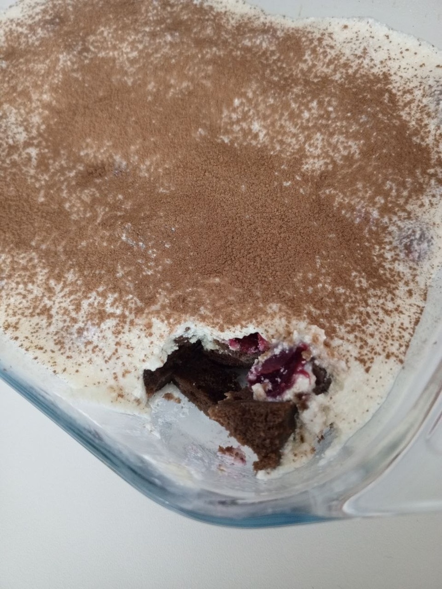 Шоколадный бисквит нарезать кубиком, добавить ягоды (у меня вишня конс.) полить любым кремом. Заварным, сметаной, творогом, сливками. Что есть в наличии, что любите. Регулируйте количество сахара. Готовьте с удовольствием! #готовимдомавкусно #десерт #выпечка #кекс #шоколадная_выпечка #заварной_крем