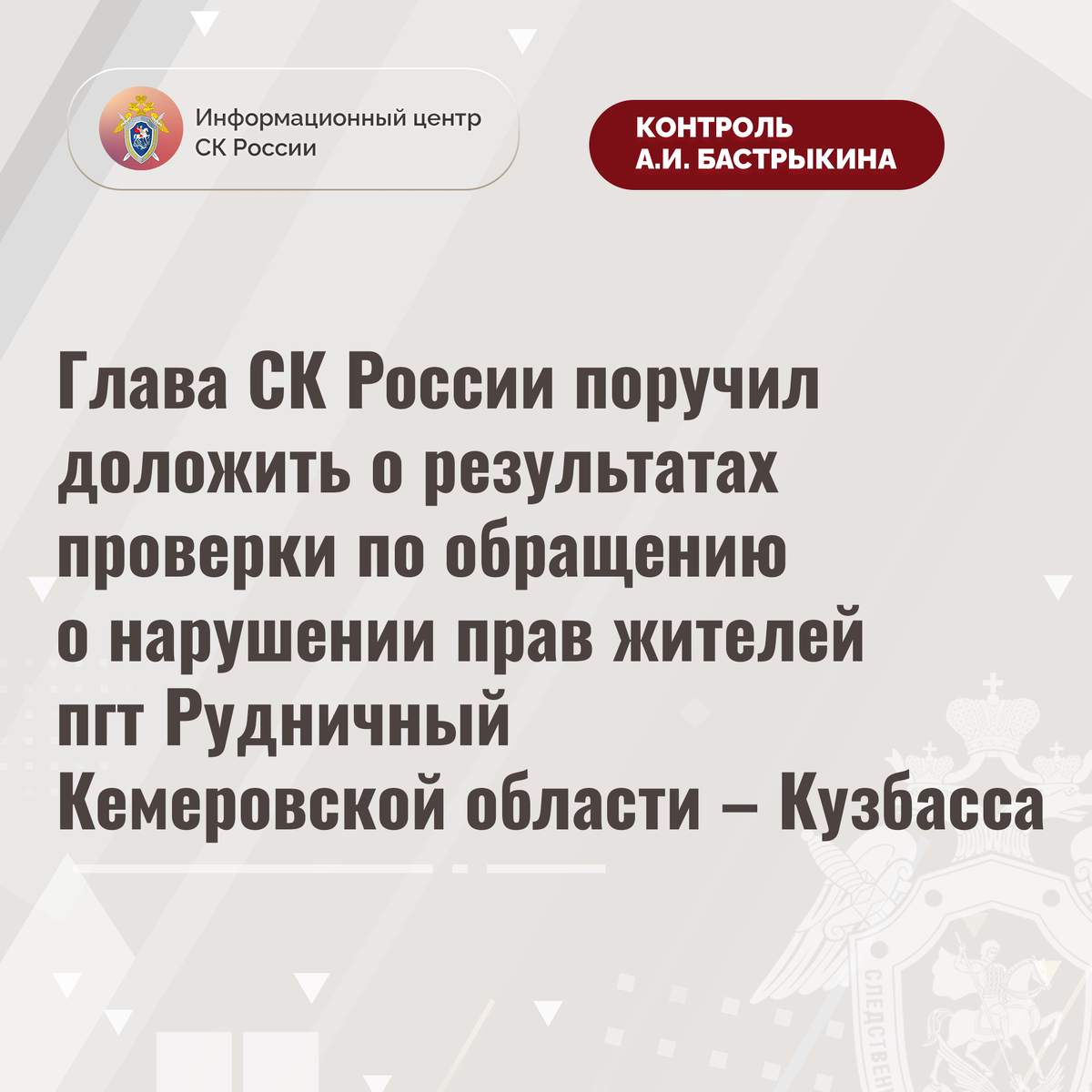 Глава СК России поручил доложить о результатах проверки по обращению о нарушении прав жителей пгт Рудничный Кемеровской области – Кузбасса