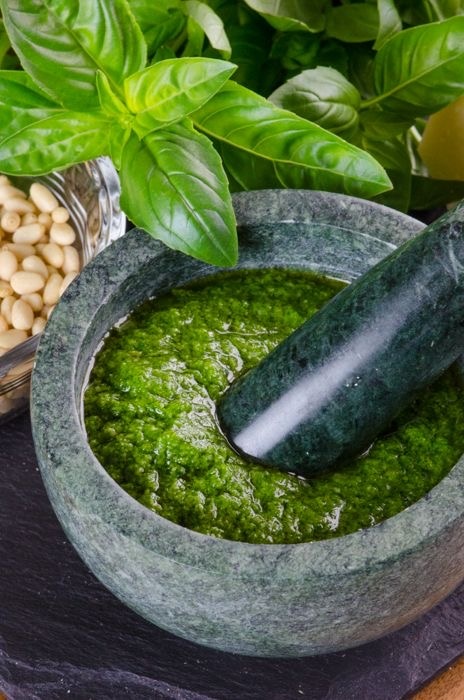 Классический песто делается из базилика и кедровых орешков. Но можно сделать из любой зелени — петрушки, укропа, кинзы, даже из смеси. Получается вкусно и бюджетно.