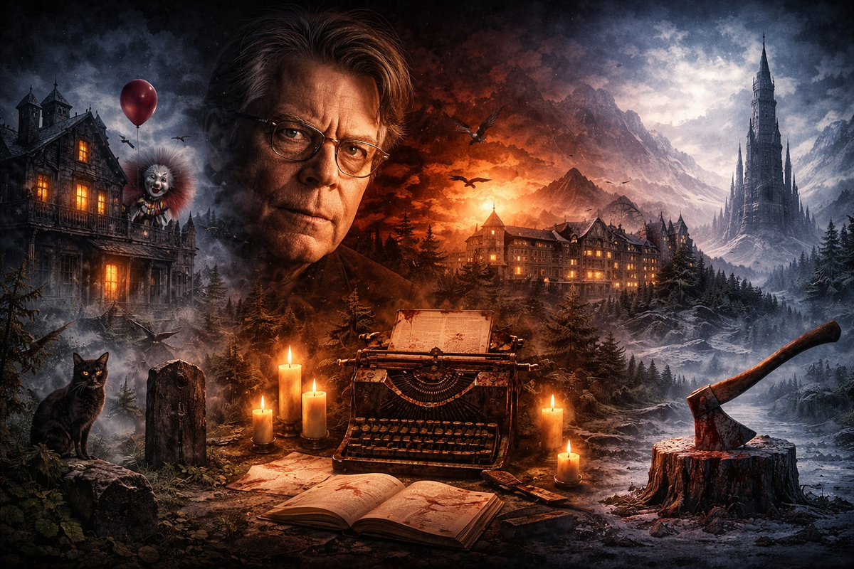 Почти любое введение в творчество Стивена Кинга начинается с одного и того же — «король ужасов». Это определение настолько прочно вошло в культурный обиход, что стало восприниматься как исчерпывающая характеристика. Между тем оно не просто упрощает его прозу — оно уводит читателя в сторону от того, что Кинг на самом деле делает. Потому что Кинг пишет не про монстров. Он пишет про людей, которые с ними сталкиваются. Если проследить сквозные мотивы его романов, становится очевидно: сверхъестественное у Кинга почти всегда выполняет функцию зеркала, а не самостоятельной угрозы. Пеннивайз в «Оно» — существо, которое питается именно детским страхом, принимая форму самого личного кошмара каждого ребёнка. Отель Оверлук в «Сиянии» не создаёт безумие Джека Торренса — он его обнажает, усиливает то, что уже существовало внутри. Эта логика повторяется снова и снова. Сверхъестественное у Кинга — катализатор, а не причина. Особенно показательны романы, в которых сверхъестественного нет вовсе — или он