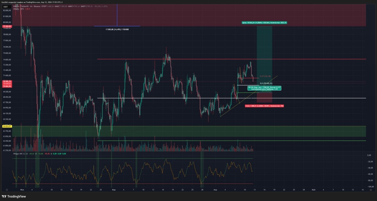 Последний лонг этого цикла, ТВХ 69120, цель 78к, стоп 67.7к.