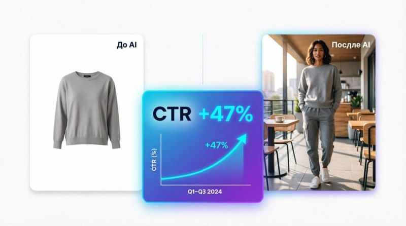 Карточки были обычные — фото на белом фоне, описание. CTR — 2.3%, продаж мало. Что сделали: 1. Сгенерировали AI-модели для карточек (вместо фото на манекене) 2. Добавили видеообложку 10 секунд (товар в движении) 3. Сделали 3D-визуализацию товара в интерьере Результат через 2 недели: 📊 CTR вырос до 3.4% (+47%) 💰 Конверсия в корзину +23% 📦 Продажи +31% Затраты: 2,500₽ на AI-модели + 3,500₽ на видео Окупилось за 4 дня. Вывод: визуал решает. Даже если товар хороший — без правильного оформления его не заметят. Кто работает с маркетплейсами — какой у вас CTR? #wb #ozon #маркетплейсы #кейс