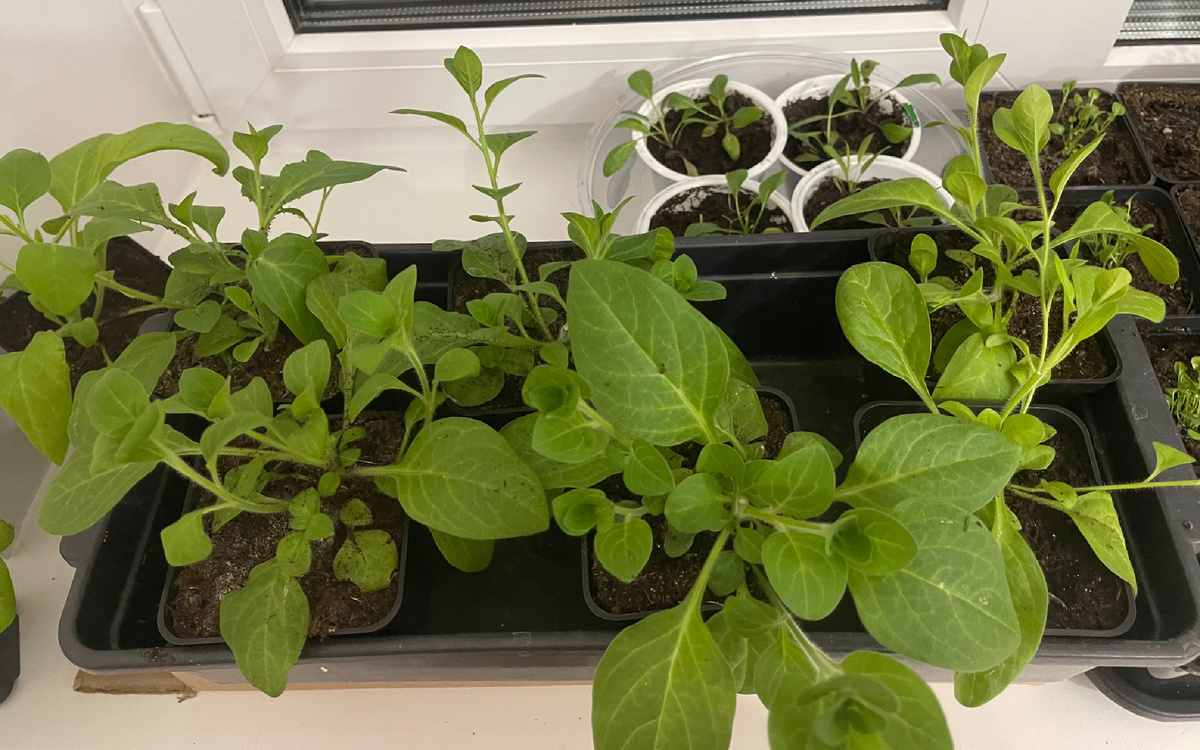 Вторая декада апреля. Еженедельный отчет по рассаде. Уже хочется всех и вся высадить в открытый грунт. Коль не хотят расти по хорошему в человеческих условиях, то пусть растут как могут на улице. Только вот рука не поднимется. Бывало всякое в делах рассадных. И плошки со всходами переворачивались, и расти не хотела рассада. Но такая напасть случилась впервые. Но самое неприятное на последок. Начну с петуний. На старте они почему-то тормознули. Расти никак не хотели. А потом дело пошло на поправку. Макушку прищипнула. У некоторых и боковые побеги срезала. Похожи сейчас на паучков. В прошлом году у меня проблема была с укоренением черенков петунии. Раз за разом они просто сгнивали. В первый раз думала, залила, они от сырости отошли в мир иной. Но и во второй раз. и в третий все повторялось. Получилось на четвертый раз. Думаю, что виной всему был вермикулит. Первый раз черенки ставила на укоренение в чисто вермикулите. Укореняла так ранее не единожды. Приживаемость была 100%. Второй и