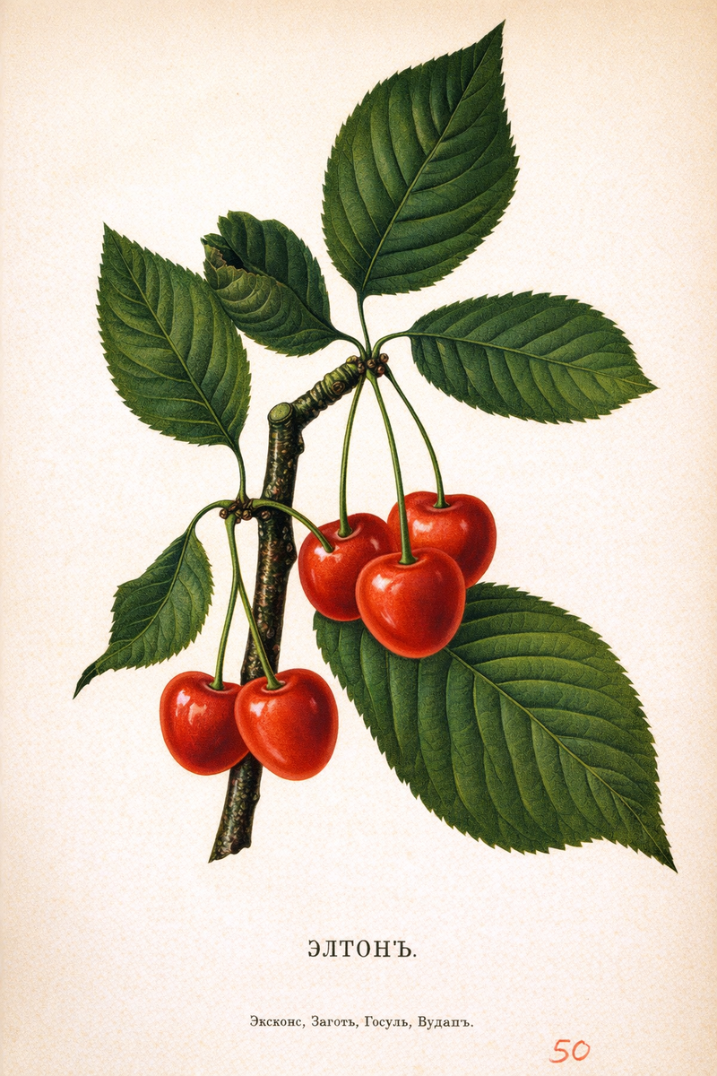 - Жизнестойкость: Это теплолюбивый сорт. Зиму он хорошо переносит только в западных и южных губерниях России. В более северных регионах (например, в Прибалтике, под Ригой) крупные взрослые деревья вымерзали даже в открытом грунте. В таких прохладных климатических зонах выращивание черешни Эльтон рекомендовалось исключительно в защищенной шпалерной культуре (у стен зданий, с обязательным укрытием на зиму).