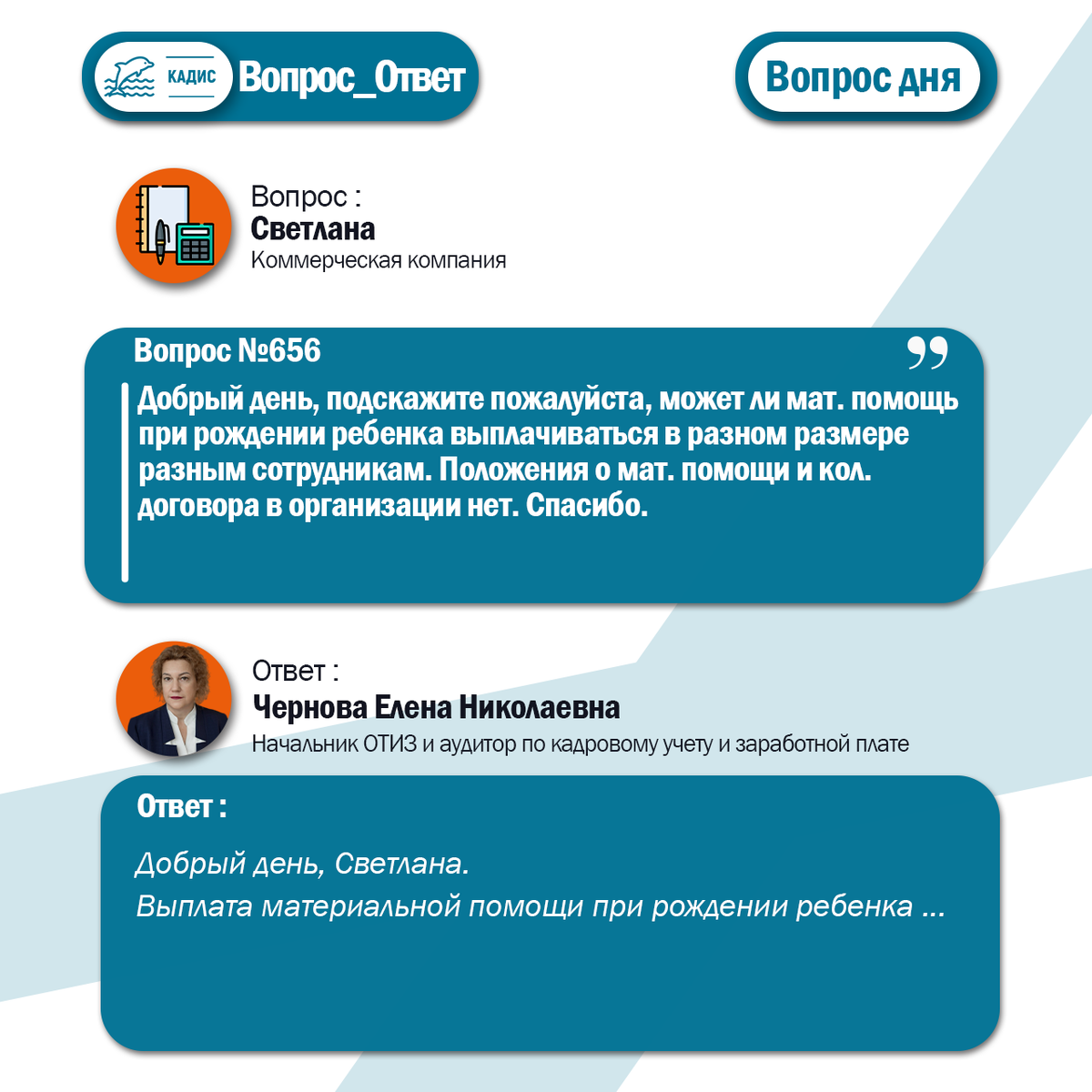 Добрый день, подскажите пожалуйста, может ли мат. помощь при рождении ребенка выплачиваться в разном размере разным сотрудникам. Положения о мат. помощи и кол. договора в организации нет. Спасибо. Ответ: Добрый день, Светлана. Выплата материальной помощи при рождении ребенка – это право работодателя. Трудовое законодательство не обязывает работодателя выплачивать ее. Решение о выплате материальной помощи при рождении ребенка рекомендуется закрепить в коллективном договоре или ЛНА. С 1 января 2026 года сумма необлагаемой НДФЛ и страховыми взносами единовременной выплаты при рождении ребенка увеличена с 50 тыс. рублей до 1 млн. рублей (ФЗ от 23.07.2025г. №227-ФЗ «О ВНЕСЕНИИ ИЗМЕНЕНИЙ В ЧАСТЬ ВТОРУЮ НАЛОГОВОГО КОДЕКСА РОССИЙСКОЙ ФЕДЕРАЦИИ»). Кроме того, с 1 января 2026 года сумму необлагаемой выплаты в пределах 1 млн. руб. можно учесть в расходах по налогу на прибыль (подп. 19.5 ст. 265 НК РФ). Согласно п. 1 ст. 252 НК РФ, расходы должны быть экономически обоснованы и документально подтве