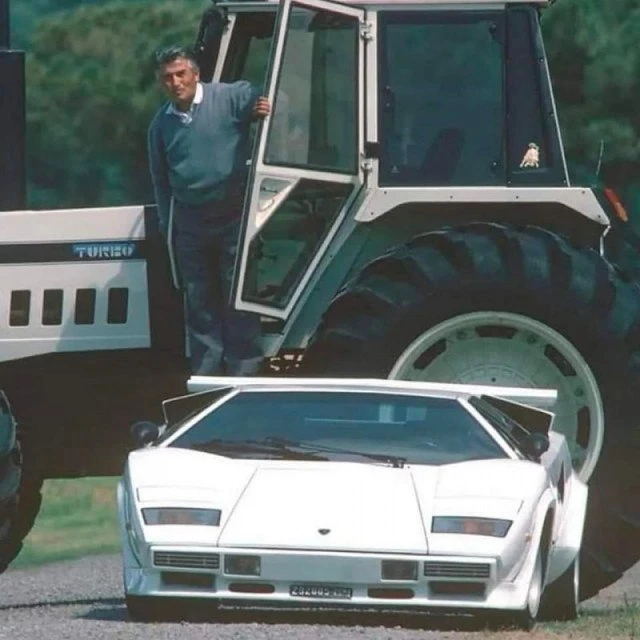 Попалось фото где Ферруччо Ламборгини презентует Ламборгини Countach S в 1980 году.