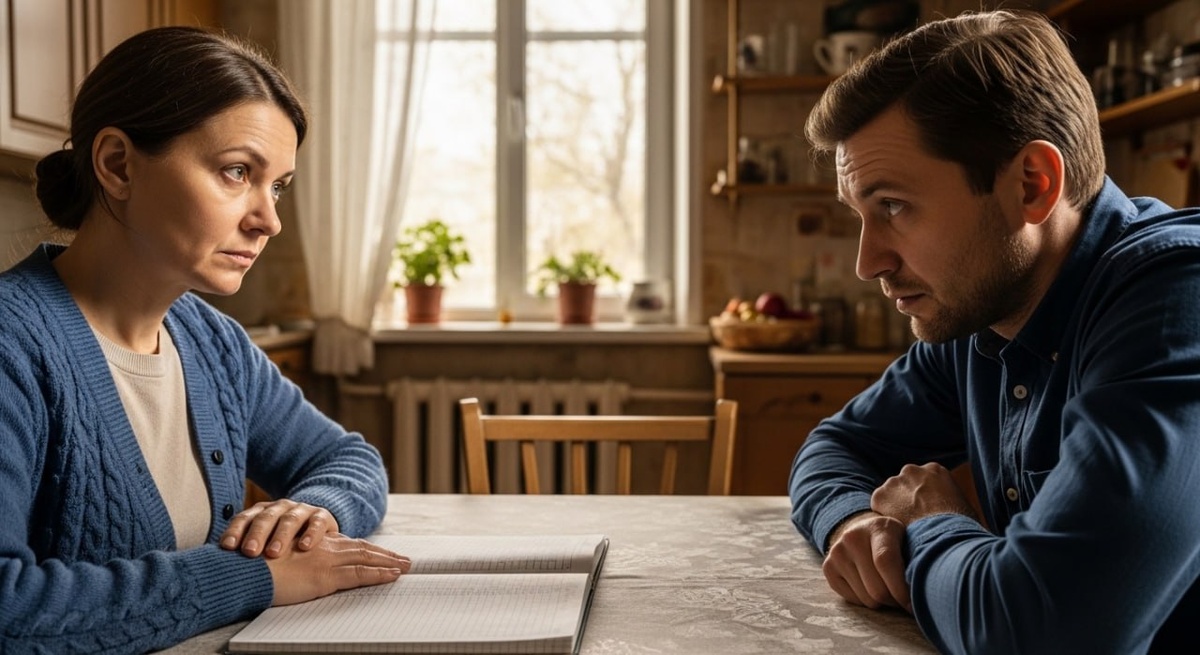 Записная книжка в клетку лежала на краю кухонного стола уже третий день. Старая, с потёртыми уголками, в ней Светлана вела учёт семейного бюджета с самого начала их с Геннадием совместной жизни. Двадцать три года подряд. Каждый столбик цифр, каждая строчка написана её рукой. И вот сейчас муж смотрел на эту книжку, как на обвинение, которое она специально положила перед ним. Хотя она просто забыла убрать.