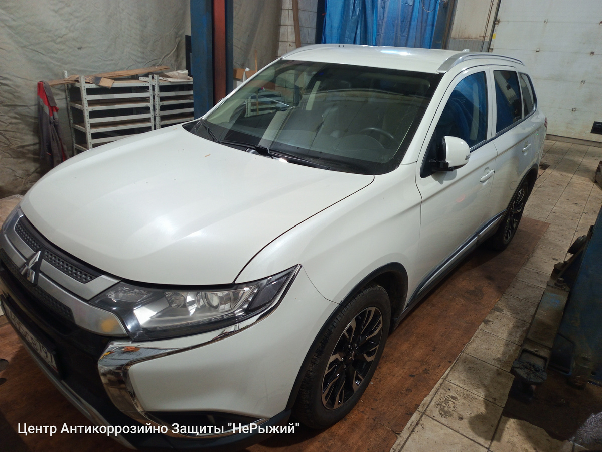 Локальная пескоструйная очистка Mitsubishi Outlander с последующей антикоррозийной обработкой распыляемым полиуретановым герметиком