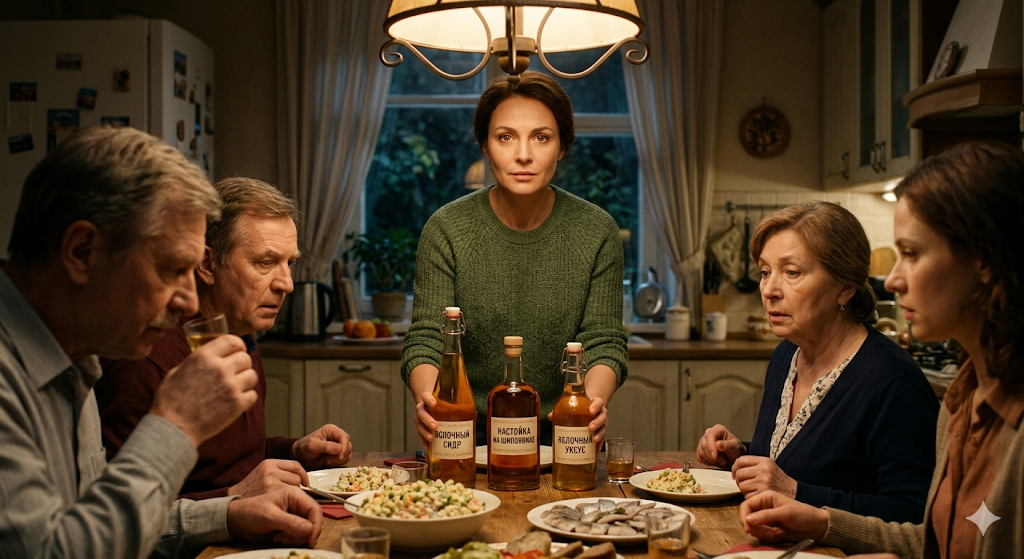За три года замужества Наталья Громова поняла одну простую вещь: её увлечение производством домашнего яблочного уксуса, сидра и настоек из трав в семье мужа считалось чем-то средним между странностью и блажью. Свёкр говорил об этом с добродушной снисходительностью, как о детской игре в куличики. Свекровь, Зинаида Павловна, молчала, но её молчание было красноречивее любых слов. А муж, Константин, просто избегал темы — он умел уходить от неудобных разговоров с грацией опытного дипломата.