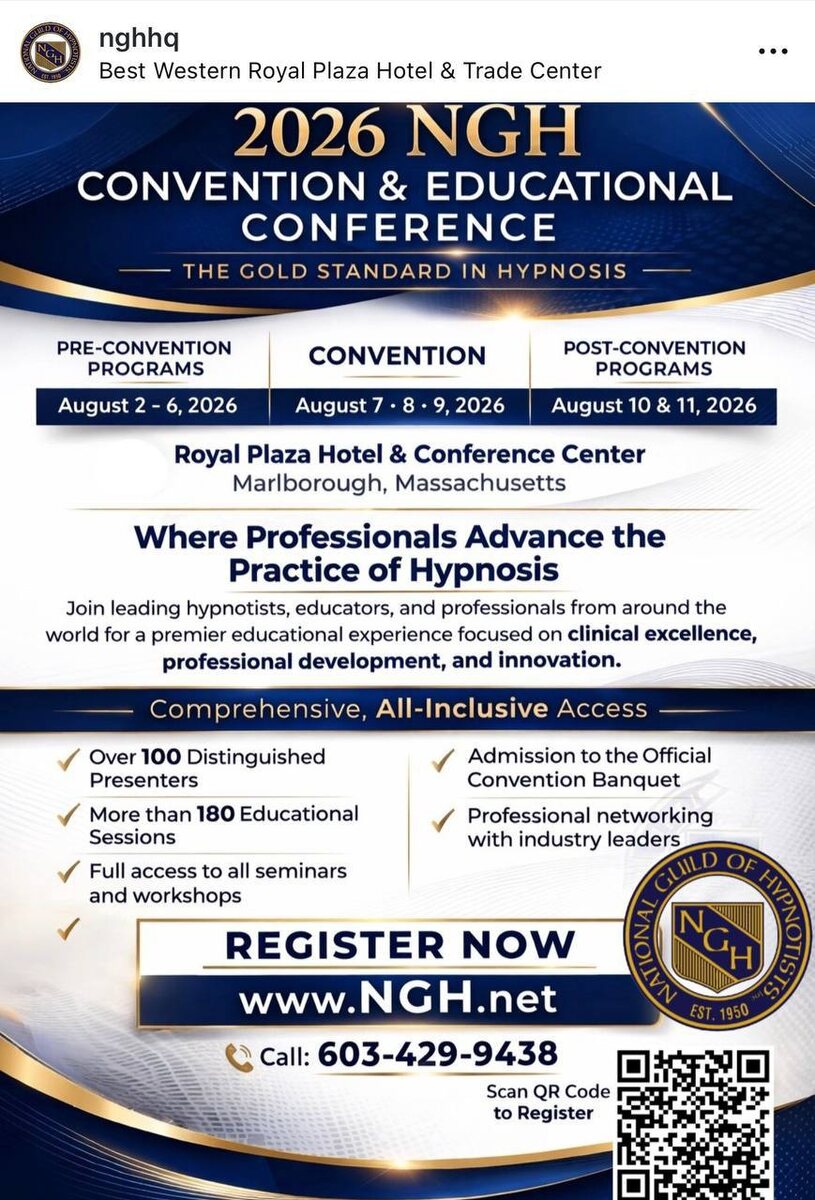 Конференция National Guild of Hypnotists в августе — это не просто мероприятие, куда “съездить для галочки”. Для меня это место, где я каждый раз пересобираю себя как специалиста. Где ты смотришь на уровень коллег со всего мира и честно задаешь себе вопрос: а где я сейчас в профессии Без иллюзий но и без обесценивания Я помню, как после одной из таких поездок я полностью пересобрала программу обучения. Потому что уже не могла давать “как раньше”. И если честно именно такие события сильно влияют на то, каким специалистом ты становишься дальше Сейчас открыто раннее бронирование и я знаю, что многие откладывают такие решения Но по опыту в такие точки роста либо заходят вовремя либо потом догоняют В этом году мы снова собираемся небольшой группой чтобы поехать вместе, поддержать друг друга и взять максимум от конференции Если откликается - пиши в комментариях,- отправлю более подробную информацию Иногда один выезд меняет больше, чем еще один курс особенно когда ты уже в профессии
