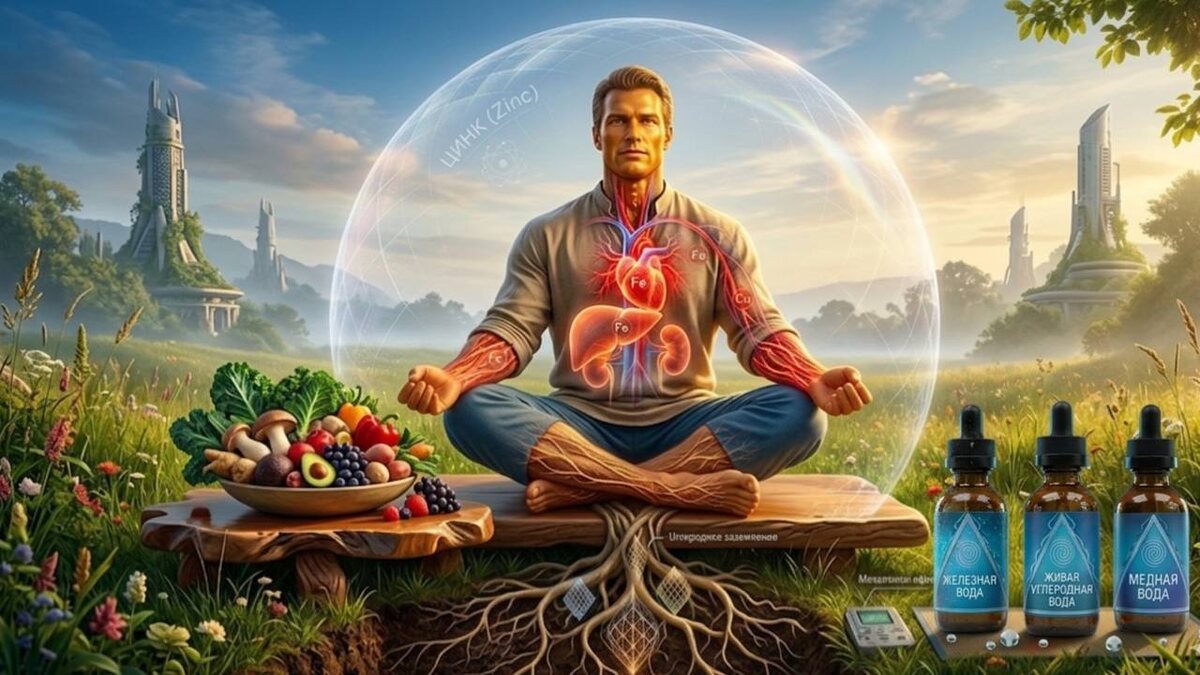 • Потеря «минусового» заряда (Живая углеродная вода): Мясо давало тебе грубое, но стабильное заземление. Без него ты начинаешь «летать» и накапливать статическое напряжение. Углерод восстанавливает истинное Заземление, позволяя клеткам получать энергию напрямую от резонанса Земли, компенсируя отсутствие «тяжелой» пищи.