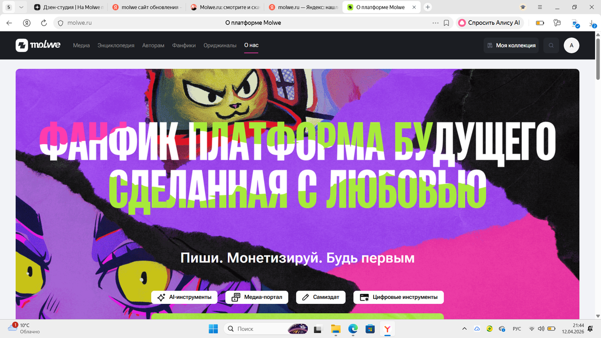 О "Molwe" писала в своей самой первой статье. Пришла я на "Molwe", когда они мне окончательно вынесли мозг со своей рекламой и я не пожалела, что стала работать здесь. Иногда мне кажется, что я вообще зря выбрала Литнет, он вообще на самом деле для обычных рассказов. Однако, меня убеждают, что все месяцы торчала там не зря, что я хоть там получала практику.