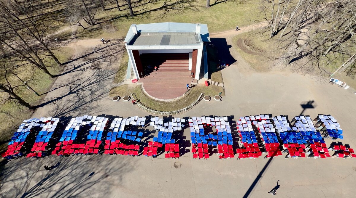 В парке «Екатерингоф» в Петербурге активисты «Молодой гвардии» и «Волонтерской роты» выстроились в живую фразу «Поехали!»