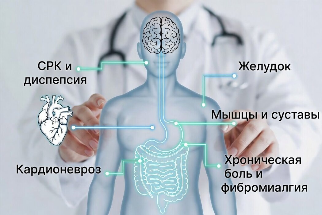 Понимание психосоматики сильно извратили поп-психологи. Хотя это серьезное направление на стыке медицины и клинической психологии. Я, как клинический психолог, постоянно сталкиваюсь с последствиями такого искажения. Пациенты приходят после фразы врача "все в голове" и чувствуют себя виноватыми в собственных симптомах. На деле психосоматика - это не вымысел и не магия. Это медицинский факт: влияние психики на работу органов и систем через регуляторные механизмы. Медицинский аспект психосоматики в 2026 году не изменился по сути, но стал еще более востребованным в практике. Клинические формы, где мы встречаем психосоматику ежедневно, - это состояния, с которыми пациенты обращаются к терапевтам, гастроэнтерологам, неврологам и кардиологам. Стандартные обследования не находят грубой патологии, но человек реально страдает. Наиболее частые проявления такие: ✓синдром раздраженного кишечника;