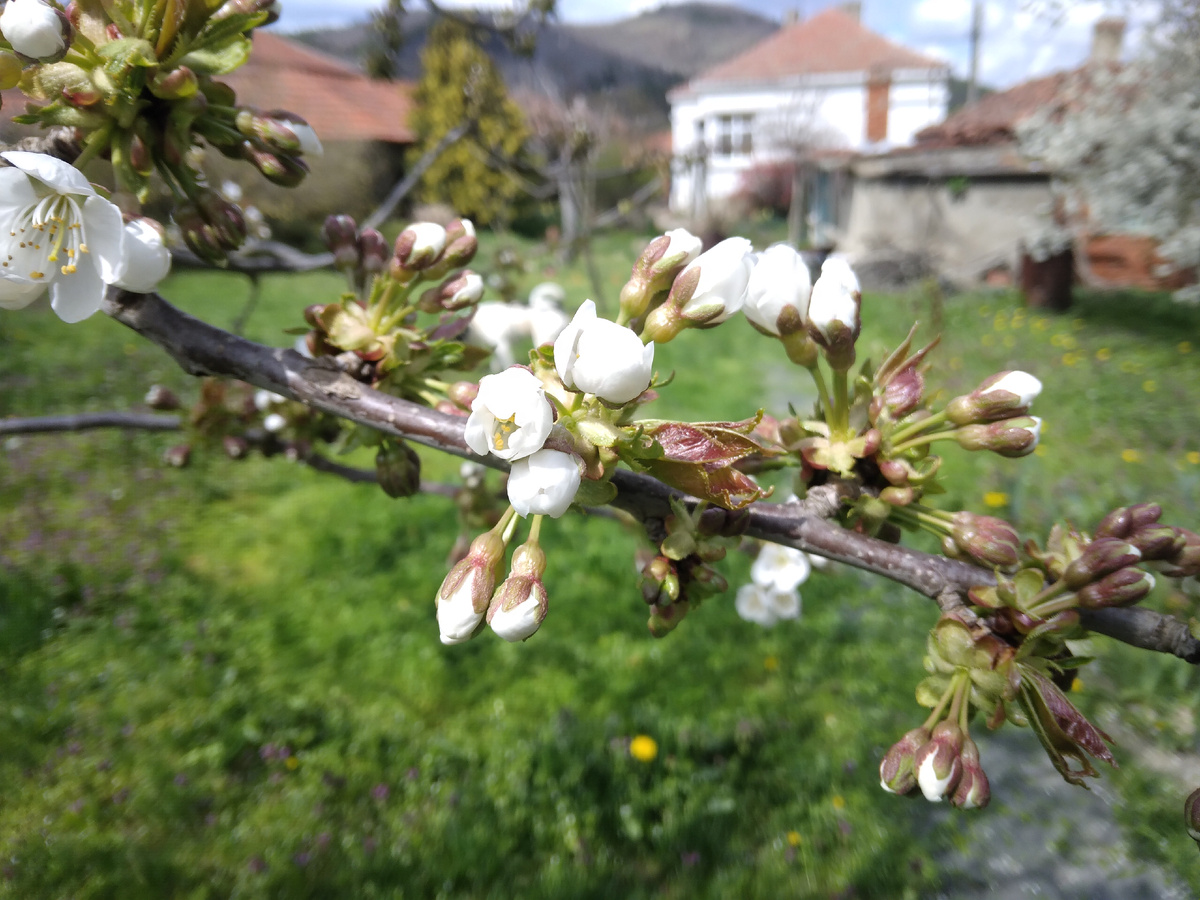 Однако и ночных заморозков не было. Весна нынче запоздала, даже тюльпаны ещё не зацвели, хотя они обычно распускаются в первой декаде апреля, и черешни только начали зацветать. Есть надежда, что ягоды на черешнях в этом году будут.