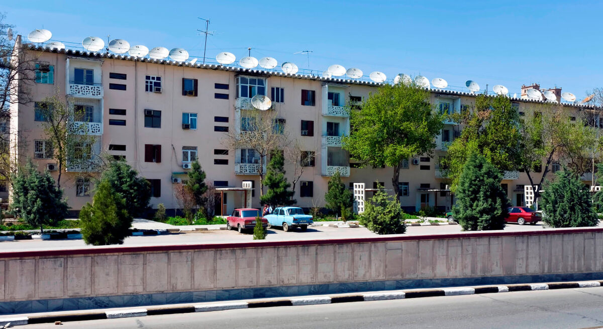 Эти фотографии - из Ашхабада, столицы Туркмении, я там побывал в 2010 году (но без фотоаппарата, одновременно со мной там был коллега Роман Устинов, фото позаимствовал у него). Одна из ярких примет того времени - спутниковые тарелки, которые себе поставили буквально все местные жители. Причина в том, что все местные туркменские телеканалы - государственные, частных нет вообще. Они официозные и скучные для постоянного просмотра. К тому же - строгая цензура. С помощью спутникового ТВ можно было обойти эти ограничения. Но в 2010-2020 годах в Туркменистане власти начали активно бороться с тарелками. Официальная причина - портят облик городов, но попутно забота о народе, как бы чего лишнего не увидел на иностранных телеканалах. Тарелки начали массово снимать с домов, чтобы смотрели только официальные госканалы, ну или кабельное ТВ - но там далеко не всё, что люди хотели бы смотреть. А с интернетом там боролись самым простым способом - сильно его замедляя. Я помню, что с трудом почту мог п