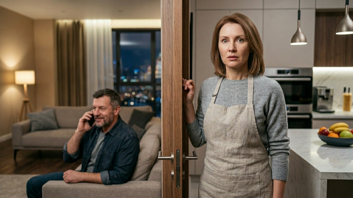 Алексей разговаривал по телефону в гостиной. Думал, что она в душе, что вода шумит, что ничего не слышно. А Светлана просто вернулась раньше, чем он ожидал, — зашла на кухню в тапочках, тихо, как делают все хозяйки, которые не хотят разбудить спящего ребёнка.