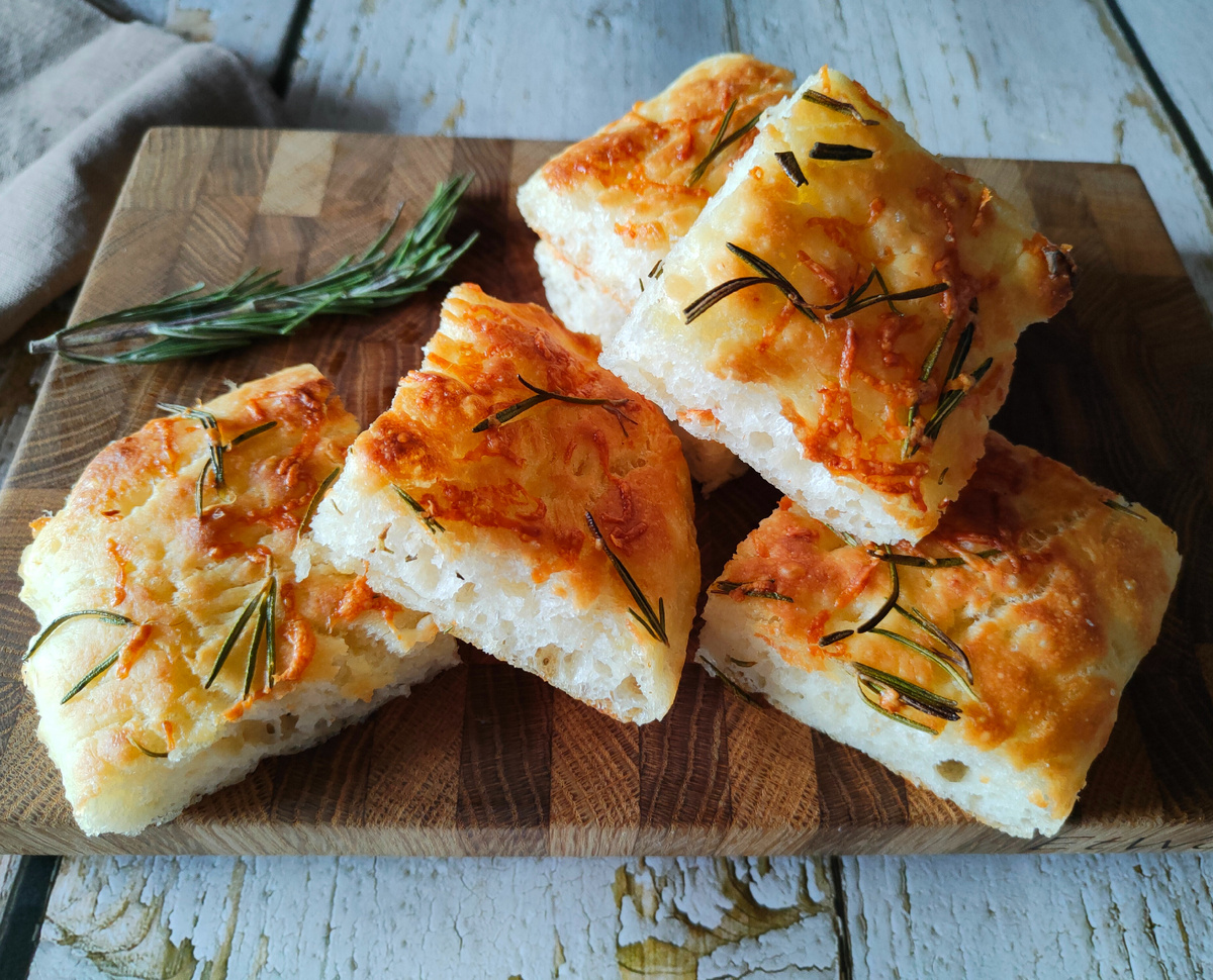 Фокачча - это итальянский хлеб, по виду напоминающий лепёшку или толстый лаваш. Тесто для фокаччи по составу очень похоже на тесто для пиццы, только более жидкое. В данном случае сыр - совсем не обязательный ингредиент. Гораздо чаще фокачча бывает веганской. Это такая вкуснятина! 😋