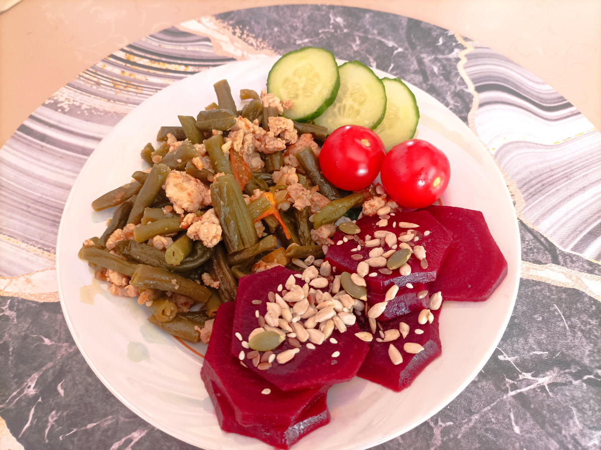 Это был перерыв в посте. Поэтому была фасоль с мясом.