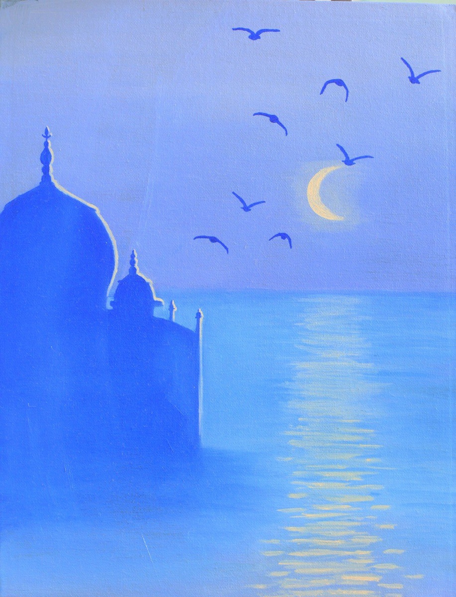 Я достала кисти, выдавила синюю краску на палитру(синий