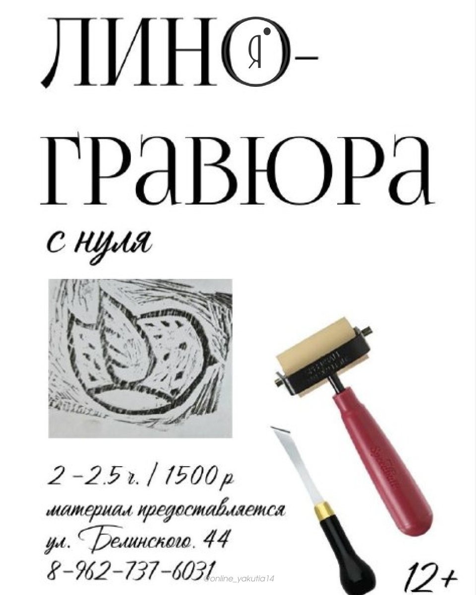 + #МК Откройте в себе художника и создайте уникальный дизайнерский шедевр, который украсит ваш интерьер или станет основой для неповторимых принтов. Все материалы предоставляются. Рабочая поверхность А6 (10*15 см). Тематика МК "Птицы Якутии", по желанию можно сделать на любую тему. 15 апреля | 15:00 16 апреля | 18:00 22 апреля | 15:00 23 апреля | 18:00 27 апреля | 15:00 Дом художника, 2 этаж 1500 руб. +79627376031 Online Якутия | Ждем вас в МАХ