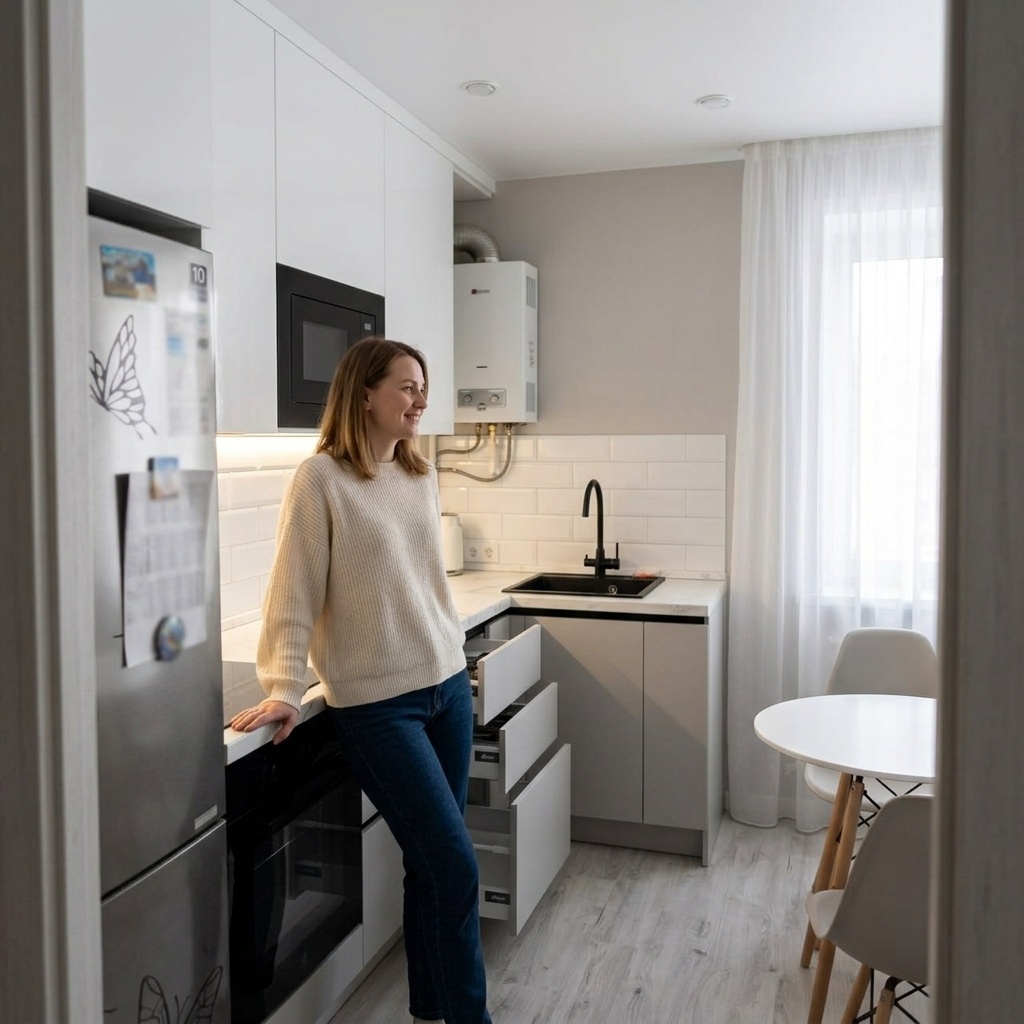 Оба варианта ведут к разочарованию. А ведь обустройство маленькой кухни — это про баланс между функциональностью и эстетикой. Про понимание того, что вам реально нужно для комфортной готовки, а что — просто красивая картинка из интернета.
