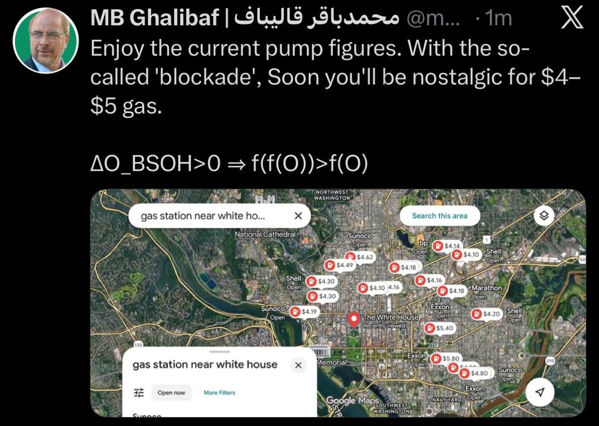 Speaker Ghalibaf posts map of gas stations near White House